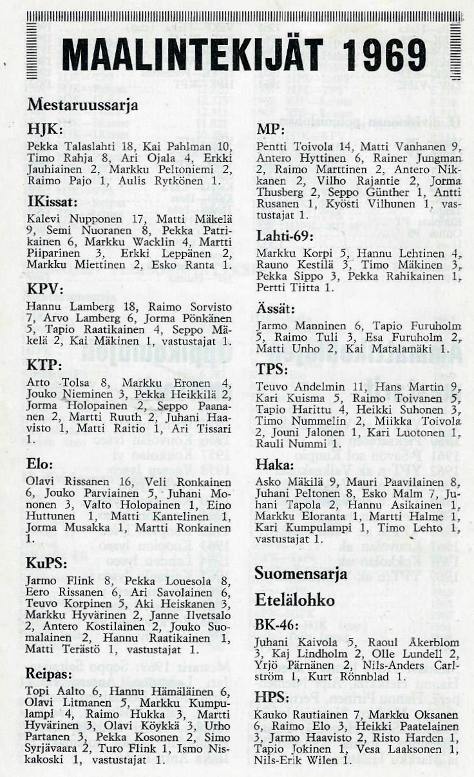 Tässä lehtijuttujen koostessa KTP-aiheista asiaa pelikaudelta 1969. Kiistelty hahmo, Arto Tolsa, siirtyi kesken kauden (heinäkuussa) 1969 ammattilaiseksi Belgiaan Beerschotiin.