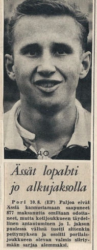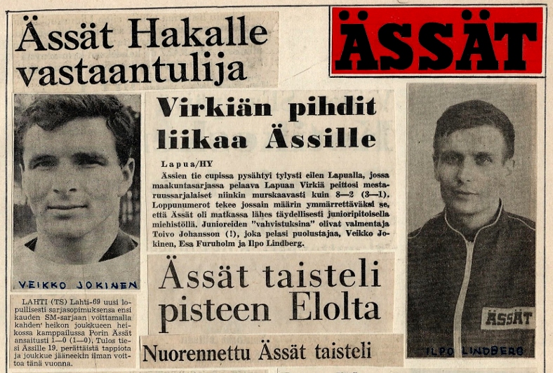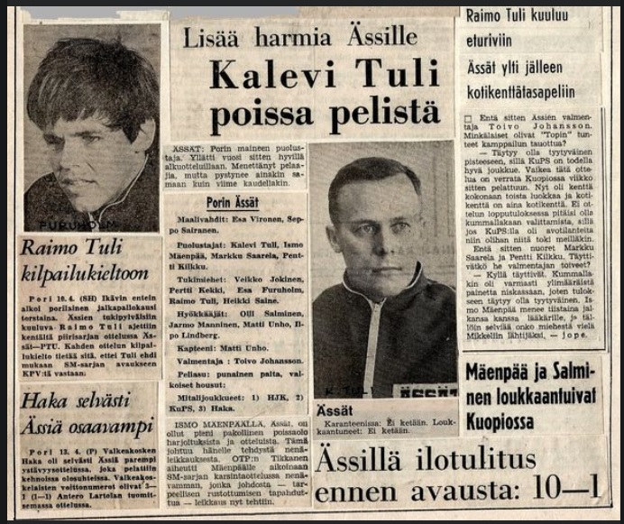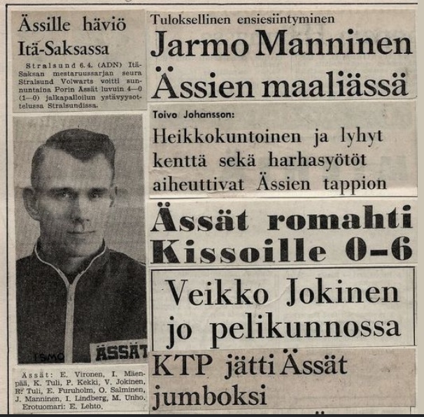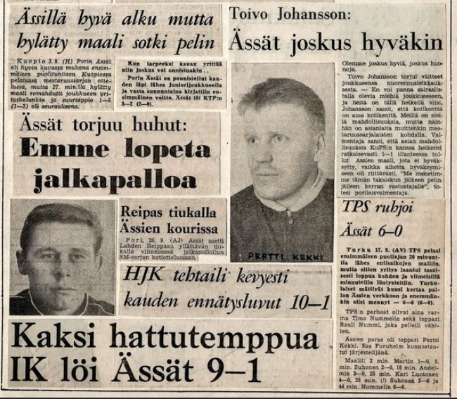 18.6.1969 tämän kirjoittaja oli ensi kertaa Kotkassa katsomassa jalkapallo-ottelua ja kyseessä oli - Porista kun olin - jumbofinaali KTP-Ässät. KTP voitti 5-2 (4-2). Yleisöä oli 1356. Tolsa teki kaksi maalia. Nieminen, Eronen ja Ruuth tekivät KTP:n loput. Ässien maalit teki ensimmäistä kauttaan edustusjoukkueessa pelannut Tapio Furuholm (nykyisen FC Interin Timo Furuholmin isä).
