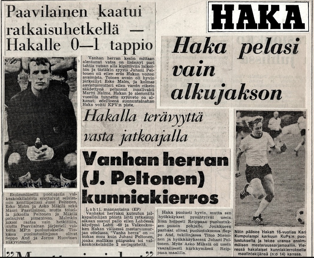 Pekka Heikkilä loukkasi polvensa työpaikallaan - hän oli viemärikaivannossa asentamassa putkistoa, kun sortunut reunama vioitti polven. Polvi leikattiin 16.5.1969 ja toipumisloman pituudesta ei uskallettu esittää arvioita.