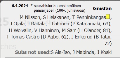(11.6.2023 * Ykkönen): Gnistan - SJK Akatemia 5-2 (Momodou Sarr - täysikäsi 3+2 - kolme maalia ja kaksi maalisyöttöä!).