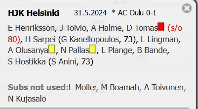 (31.5.2024 * Veikkausliiga): Korkeakunnaksen HJK hävisi Oulussa * AC Oulu - HJK 1-0.