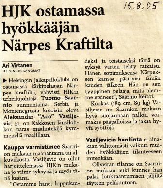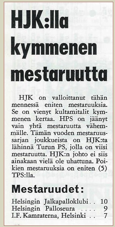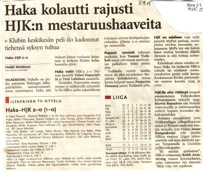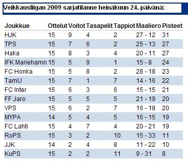 HJK jäi Veikkausliigassa (loppusarjan jälkeen) viidenneksi (KuPS mestari).