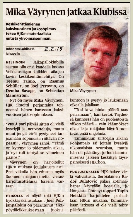 Euroliigan karsinnat: 3. kierros: (6.8.2019 ~ 1st leg) Riga FC, Latvia-HJK 1-1 * (31.7.2019 ~ 2nd leg) HJK-Riga FC 2-2 * Riga FC jatkoon yhteismaalein 3-3 - vierasmaalisäännöllä.