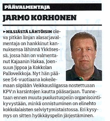 (29.5.2019): KPV:n päävalmentaja Jarmo Korhonen sai potkut - hommia jatkaa toistaiseksi Niko Kalliokoski.