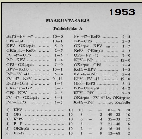 KPV jäi Veikkausliigassa sijalle 11/12 - joutui karsimaan ja hävisi TPS:lle yhteismaalein 0-3 - putosi takaisin Ykköseen.
