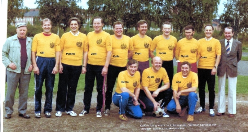 Vuoden 1948 SPL:n nuorten Suomen jalkapallomestaruuden voittanut joukkue Porin Kärpät ~ 30 vuotta mestaruuden jälkeen - kuvattu siis v. 1978.