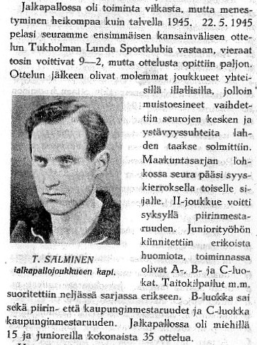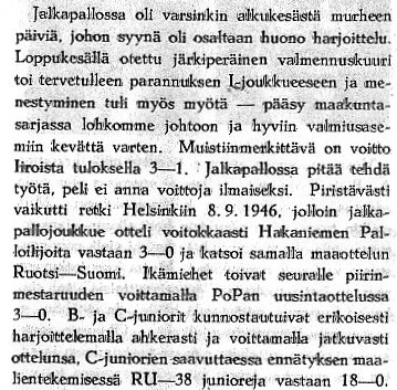 Seuraavassa lainausta lahtelaisen jalkapalloilun historiikkikirjasta (Jukka Airo, 2001):