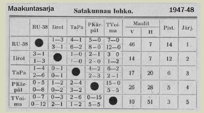 Porin Kärppien umpisurkea kausi Maakuntasarjassa päättyi ilman pisteitä viimeiselle sijalle ja edessä oli putoaminen piirinsarjatasolle seuraavaksi kaudeksi (1949).