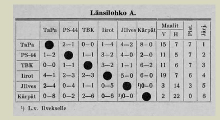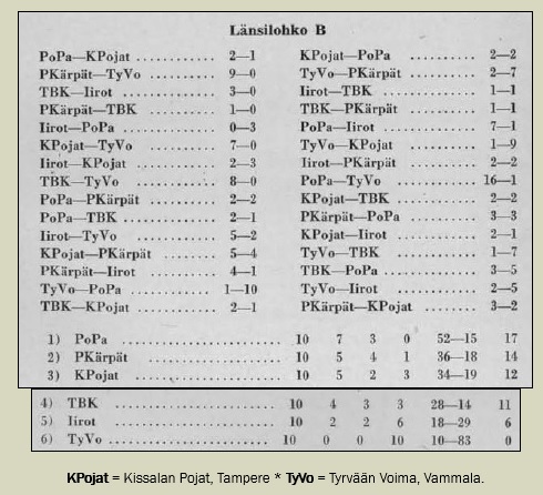 LPM pelasi silloisella tutulla (ja kai myös ainoalla) 2-3-5-systeemillä: Paloposki, Säkäjärvi-Parikka, Tuomikoski-Olkkola-Martinsen, Valtonen-Rantanen-Suvisilta-Valtonen-Parviainen (valmentajana "Tinna" Inkinen).