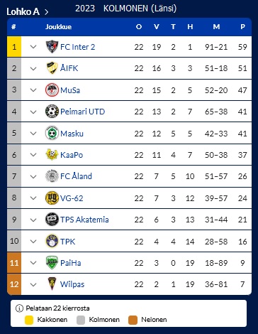 Musan Salama jäi runkosarjan jälkeen toiseksi viimeiselle sijalle (11/12) - jäi alaloppusarjaan taistelemaan putoamista vastaan.