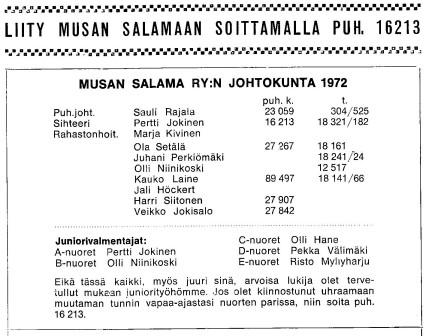 Musan Salama perustettiin 10.4.1960 Paviljongin Metsäpirtillä.