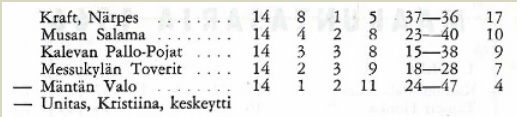 Musan Salaman edustusjoukkue heti piirinsarjoihin Matti Virosen valmentamana.