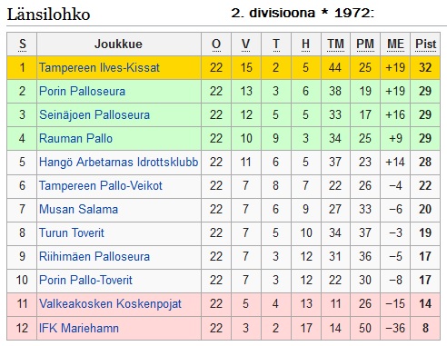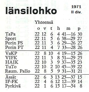 2. divisioonan länsilohkon voitti kaudella 1970 siis pisteen erolla TPV, joka nousi suoraan seuraavalle kaudelle 1971 SM-sarjaan.