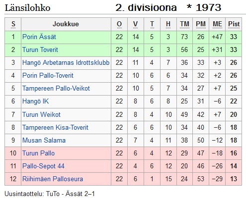 PPT ja SM-sarjasta pudonnut Ässät samassa 2.div.-lohkossa porilaisjoukkueina 1970: