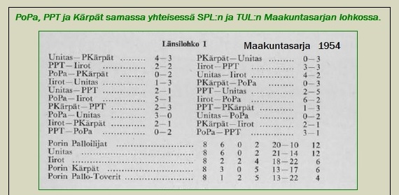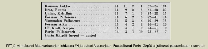 Henkiin herätetty PPT:n kakkosjoukkue Porin Pallo-Pojat (PPP) voitti piirin III-luokan mestaruuden ja pääsi nousukarsintaotteluun noususta 4. divisioonaan Yyterin Pallon kanssa. Yyterin Pallo voitti PPP:n vasta uusintaottelun jatkoajalla.