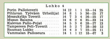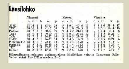 TuTo 3-2. HPK 2-1, ÅIFK 2-2, VaKP 1-1, PS-44 1-1, IFFK 0-0, Pyrkivä 2-0, Ässät 2-1, TaPa 2-0, RaPa 2-0 ja TPV 2-2.