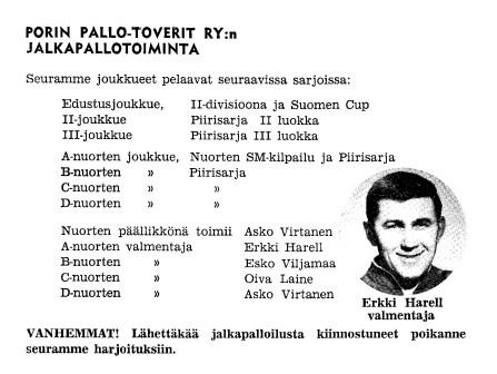 Kaudet 1966-69 Erkki "Nyskä" Harell pelasi Pihlavan Työväen Urheilijoissa ja kaudelle 1 siistyi siis valmentamaan PPT:n A-junioreja.