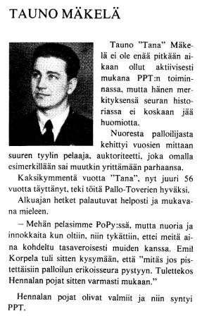 Kokemusta löytyi myös PPT:n A-juniorien valmentajalta - Erkki Harell (kuvassa) pelasi kaudet 1949-57 RU-38:ssa, kauden 1958 TPS:ssa ja kauden 1959 PoPa:ssa (jolloin RU-38 voitti siis SM-hopeaa), Karhuissa Harell pelasi vuodet 1960-62, P-Iiroissa kauden 1963 ja palasi RU-38:aan kausiksi 1964-65.