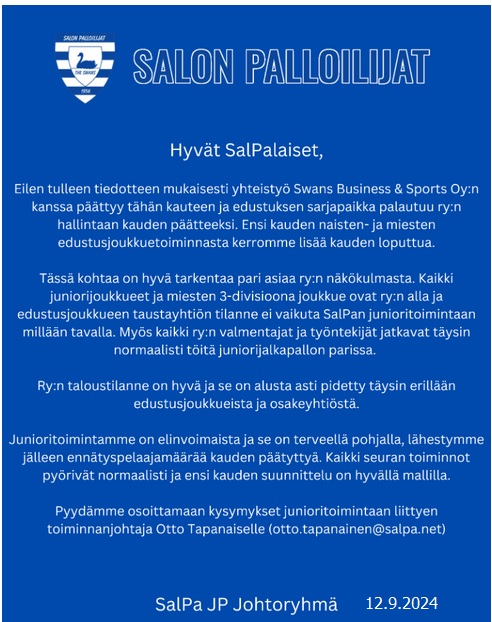 (Veikkaaja, ennen kauden 2001 alkua): Salolainen jalkapallo alkoi nostaa päätään toden teolla pari vuotta sitten, kun ex-maalivahti Petri Jakonen palasi kotikaupunkiinsa ja ryhtyi vetämään SalPan toimintaa.