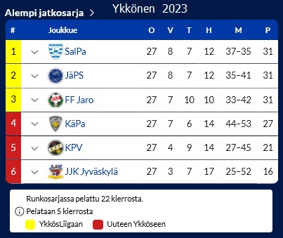 SalPa lukeutui jo toissa vuonna Kakkosen suursuosikkeihin, mutta nousu jäi haaveeksi. Viime syksynä ryhmä ei jättänyt epäilyille sijaa, vaan voitti länsilohkon näytöstyyliin 20 pinnan marginaalilla. Salolaiset tehtailivat eniten maaleja koko sarjassa - yli kolme per ottelu. Myös pisteitä kertyi enemmän kuin muille lohkovoittajille.