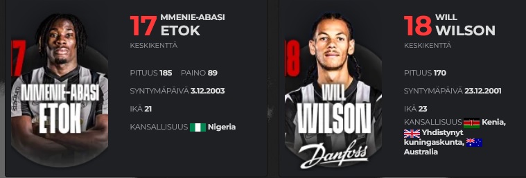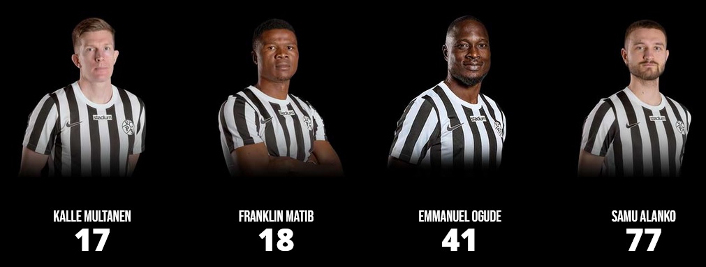 SJK: koko pelin pelanneet: (mv) Rasmus Reislahti, Martti Haukioja, Ahiabu, Antti-Ville Räisänen, Maissa Fall ja Yassine El Ouatki.