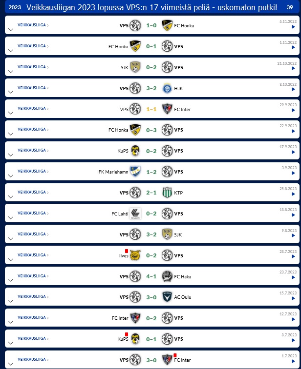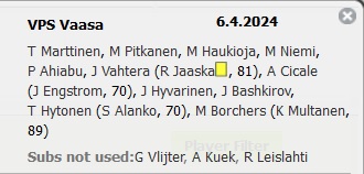 (5.4.2025 * Veikkausliigan avauskierros): VPS - AC Oulu 4-3 (0-2).