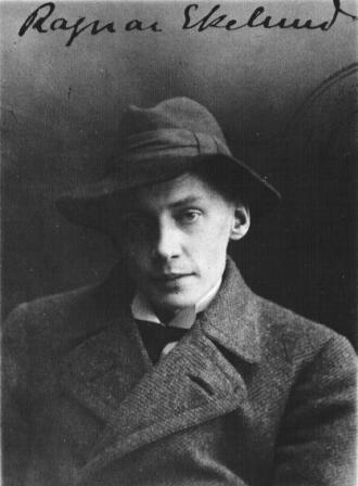 RAGNAR EKELUND (=Karl Selim Ragnar Ekelund) syntyi 18.12.1892 Kangasniemellä, missä hänen isänsä Georg Alfred Ekelund (s.27.11.1861 Kirkkonummella) toimi paikkakunnan ensimmäisenä apteekkarina.