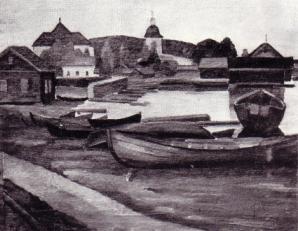 Ragnar Ekelund: Kangasniemen autio satamanäkymä (1918)..