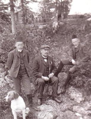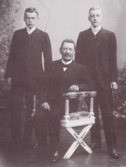 Apteekkari Alfred Ekelund poikiensa Ragnarin (oik.) ja Hilding kanssa. Kuvauspaikka on vaikeasti määriteltävissä tarkasti, apteekin lähellä kuitenkin ehkä ollaan?