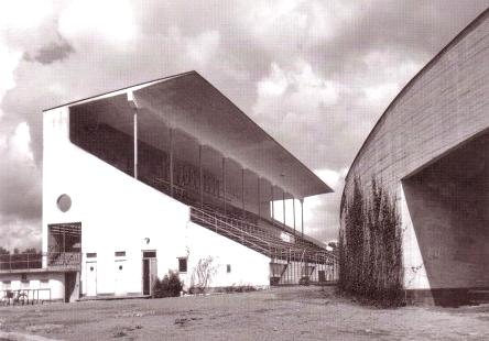 Hilding Ekelundin suunnittelema Helsingin pyöräilystadion (Velodromi 1938-40). Kuva on kirjasta Hilding Ekelund - arkkitehti (Arkkitehti 6-7/1952).