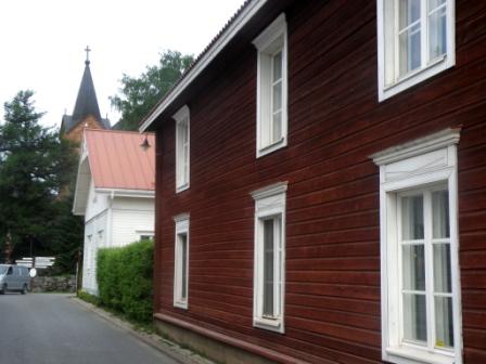 Lammin keskustan palanut talo tässä kuvassa kolmesta talosta keskimmäinen (Ville Välimäki, 2013).