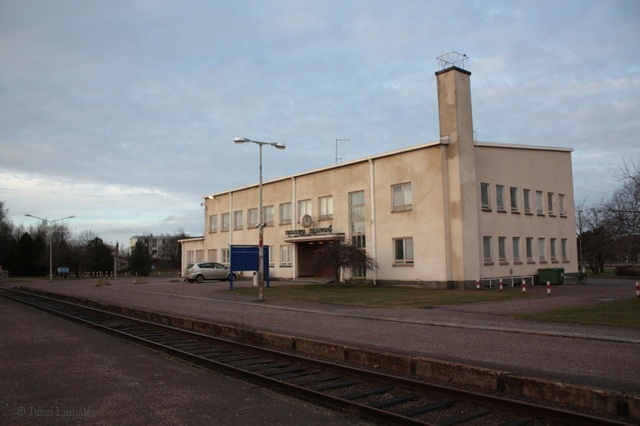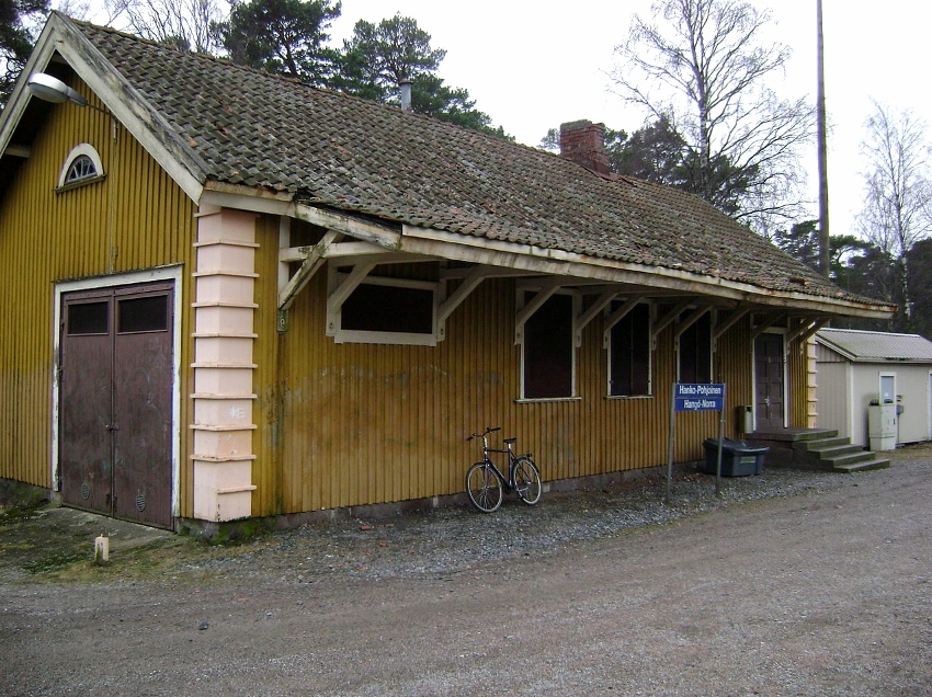 Nimimerkki "Junafani" kuvasi Hanko-Pohjoisen asemarakennuksen helmikuussa 2008. Rakennus paloi v. 2011. Lisenssi, OK (GNU Free Documentation License).