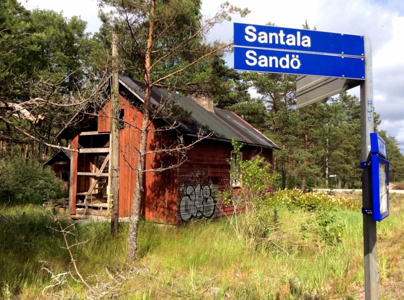 Sakari Kestinen kuvasi 9.7.2015: "Santalassa on vielä jokin vanha, lautarakenteinen rautatierakennuksen rohjo olemassa. Liekö tämä jonkun projekti, vai onko seissyt pitkäänkin tässä asussa? Mikä on rakennuksen funktio? Tuskin täällä kukaan on ainakaan lippuja myymässä istunut?" Käyttölupa "2016-11-A", kiitos.