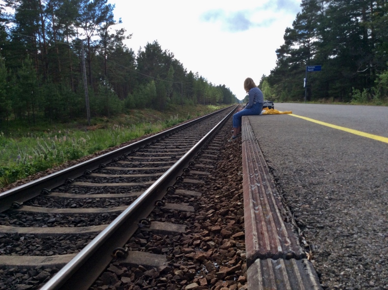 Sakari Kestinen kuvasi 9.7.2015: Yllättäen elämää Santalassa! Tytöt odottivat junaa ihmisten ilmoilla, oletettavasti olivat kävelleet paikalle mailin päästä Suomen teologiselta opistolta Hjalmar Braxénin tietä ja ylittäneet erittäin vilkasliikenteisen valtatie 25:n ("Kehä 5"). Paikan päälle saapui hieman myöhemmin vielä kolmaskin matkustaja, pukumies autollaan. Muuten alueella ei eläviä sieluja juuri näe -- kuvasta oikealle on Santalan hautausmaa ja vasemmalle mennessään alkaa Syndalenin ampuma-alueen vaara-alue." Käyttölupa "2016-11-A", kiitos.