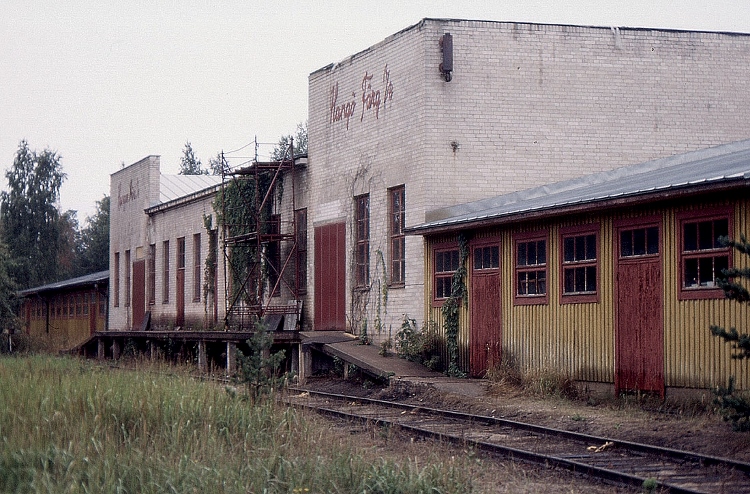 Pauli Ruonala kuvasi 17.8.1988: " Hangon Väri Oy perustettiin 1935 ja tehtaan varasto näyttää olevan samalta ajalta. Kuvan oikeasta alanurkasta sivuraide jatkuu Hanko-Pohjoiseen. Raide on vielä osaksi jäljellä, mutta erkanemisvaihde Hanko-Pohjoisessa on purettu. Käyttölupa "2017-1-C", kiitos.