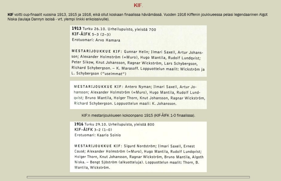 Kronohagens Idrottsförening (KIF), Helsinki - puheenjohtaja K.Karlsson - sihteeri E.Henriksson - huoltaja G.Westerholm - paita musta, housut valkoiset.