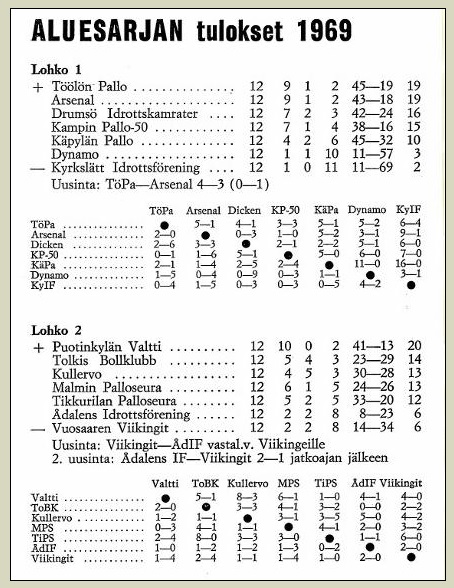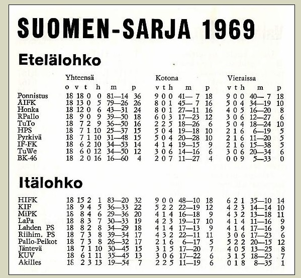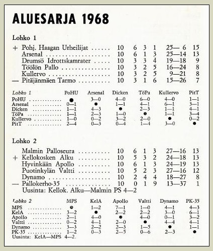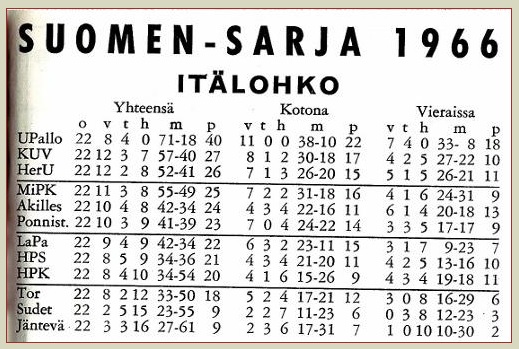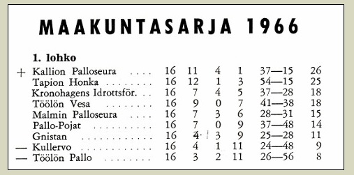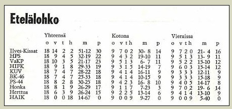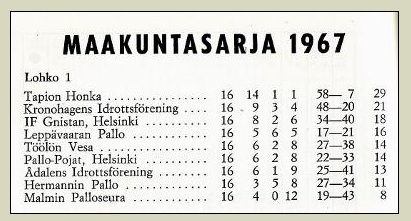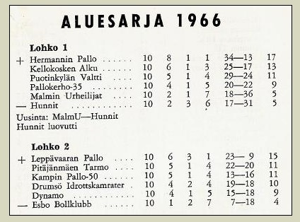 HJK oli toinen, KaPS kuudes, HPS sijalla 7. , Ponnistus 8 ja Helsingin Hukat putosi maakuntasarjaan sijalta 9.
