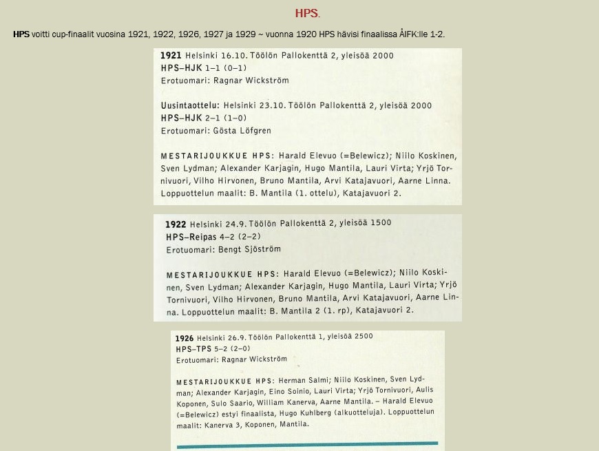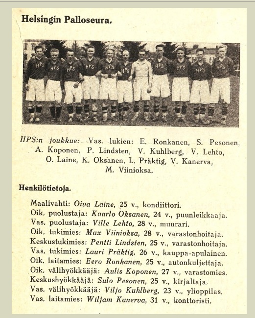 Helsingin Palloseura (HPS) - puheenjohtaja T.Ylimaa - sihteeri A.Purhonen - paita vihreä, housut valkoiset.