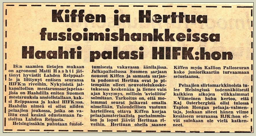 SM-sarja 1950 ~ KIF kuudentena ~ nousija Kullervo putosi saman tien.