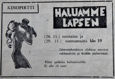 Siiri muistaa, miten elokuvalippujen hinnat alkoivat hänen ensi käynnistään alkaen vähitellen nousta - yhdestä markasta neljään markkaan. Siirin tyttöporukalla oli tapana käydä Sepän rouvalta ennakkoon ostamassa liput eturiviin keskelle.