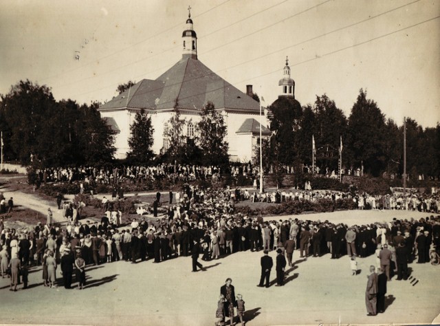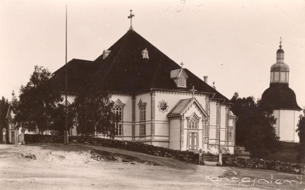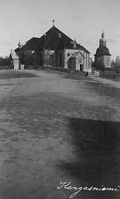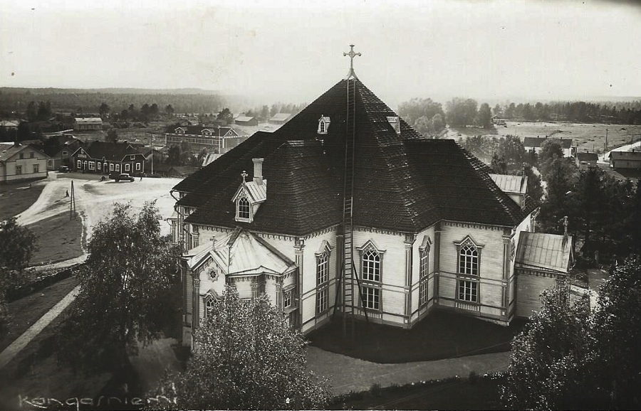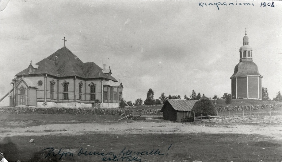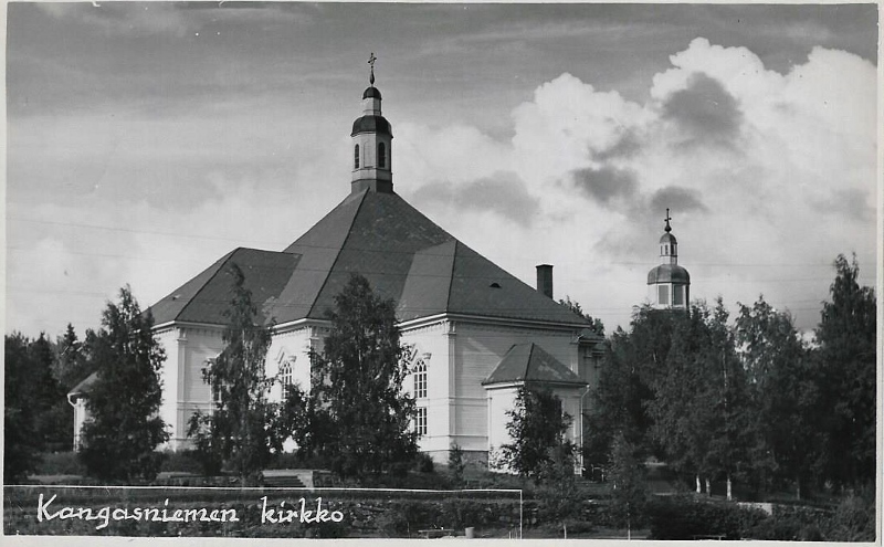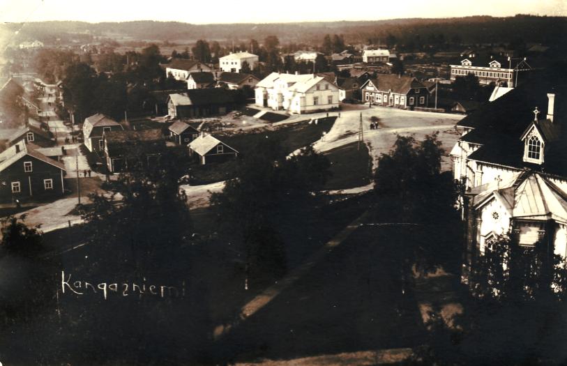 Esko Ruhanen lähetti 12.10.2011 ylläolevan postikorttikuvan vuodelta 1906, jossa yläkuvassa on kuvattuna Kangasniemen kirkko ja alaosassa yleisnäkymä kirkonkylältä (kuvattu nykyisen työväentalon kohdilta Puulan suuntaan itään). Erinomaisia ajankuvia 'varhaisilta vuosilta' molemmat.