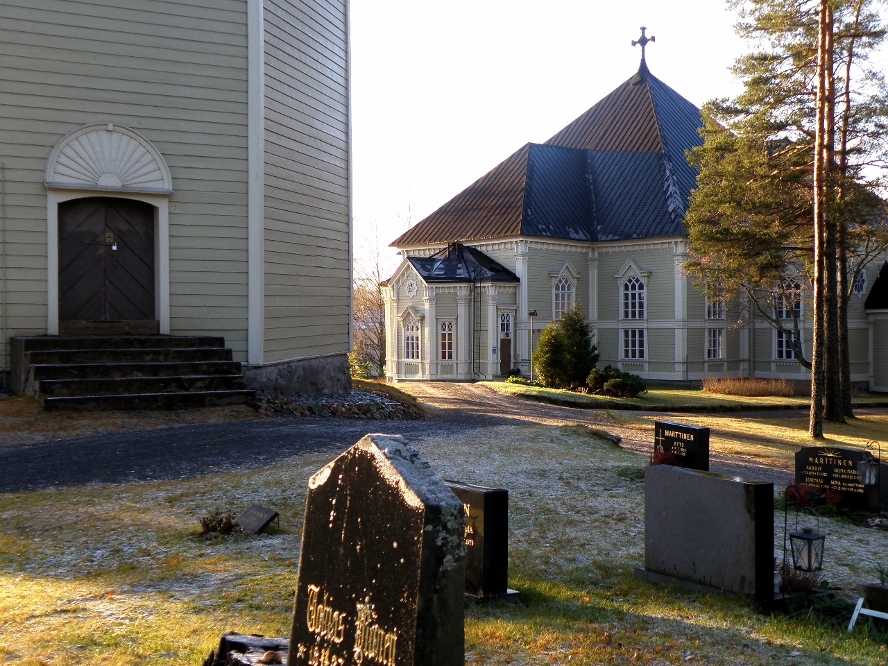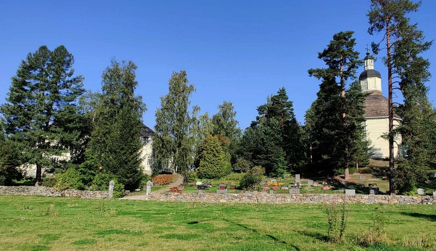 Kangasniemen kirkkoa ympäröivän maisemallisesti erittäin kauniin hautausmaan näkymiä esiteltiin jo edellisellä sivullamme #16, missä myös kerrottiin tarkemmin seurakunnan ja aiempienkin kirkkorakennusten historiaa.
