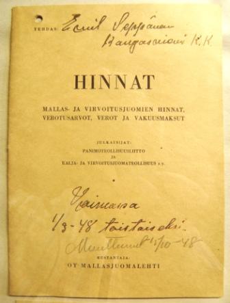 Syksyllä meille lähetettiin kotoa laivalla ruokaa kuten leipää, ruisjauhoja ja eräänä syksynä peräti neljä lammasta tiinuun suolattuna sekä lisäksi peruna- ja porkkanasäkit. Bertalla oli aitta ja ulkorakennus, mihin me ruokatavaroitamme rahtasimme laivalaiturilta. Makkoset olivat auttavaisia ja heiltä me potkurit lainasimme kotimatkaa varten tavaroillemme.