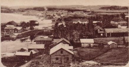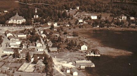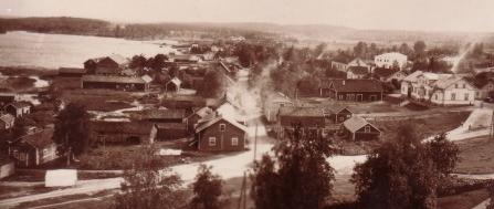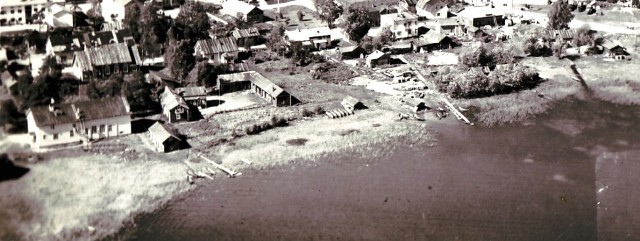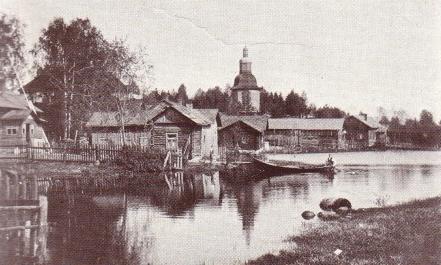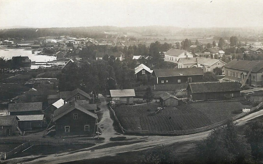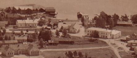 Tässä kuvassa Satamatien kirkonpuoleisen pohjoispään (ja rannan) maisemat ovat kuvattuna kirkolta vieläkin varhaisemmalta ajalta.