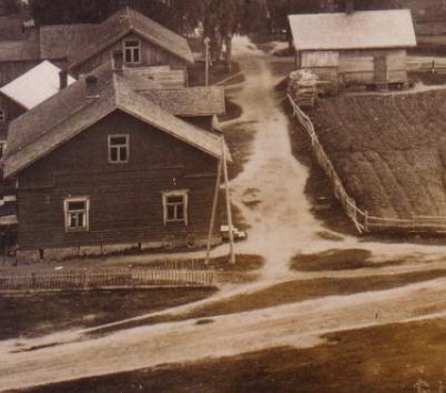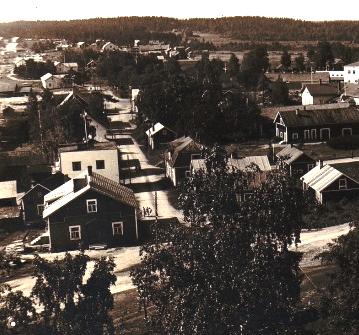 Tämän tapulista otetun kuvan käyttöömme antoi (5.3.2015) Simo Komppa. Kuva on 1910-luvun loppuvaiheilta - aivan yläpuolella olevan leipuri Mustosen kulmatalokuvan ajoilta. Tilda Tissarin rakennus on vielä paikallaan (myöhemmin siis Hännisten talo samalla paikalla).