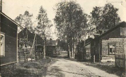 Tästä samasta kuvasta oli kopio myös 'Perinnealbumissa' (1979), jossa kuvatekstissä mainittiin: Leipuri Mustosen talo oli samalla kadulla kuin räätäli Urho Makkosen talo. Vastakkaisella puolella asui suutari Väisänen.