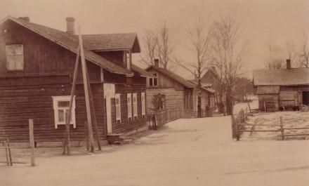 Tien länsipuolella, vastapäätä "Sumppi-Matin" taloa näkyy Tilda Tissarin vaalea puurakennus.