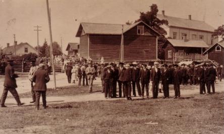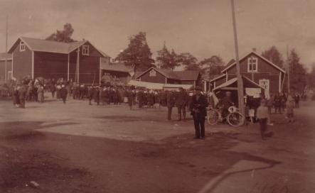 1) Pekka Husso (edessä oikealla), 2) Gabriel Halttunen (myöh. Makkoset), 3) laivuri Puntanen, 4) leipuri Mustonen (myöh. matkailijakoti), 5) M.Pylvänäinen ja 6) Halttunen.