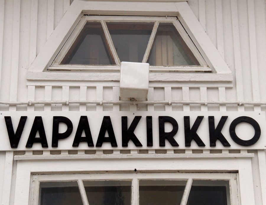 Vapaakirkon (=Betania) pääsisäänkäynnin yllä teksti tiedottaa - kuvattu 12.4.2009 (S&J).