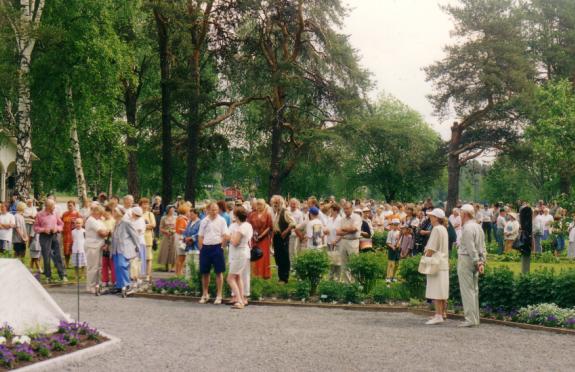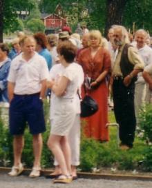 Juhlallisuudet ohi - kivitaiteilija Juhani Saksa lehtimiesten, kuvaajien, esiintyjien ja yleisön keskuudessa turisemassa - 14.6.2009 (S&J).